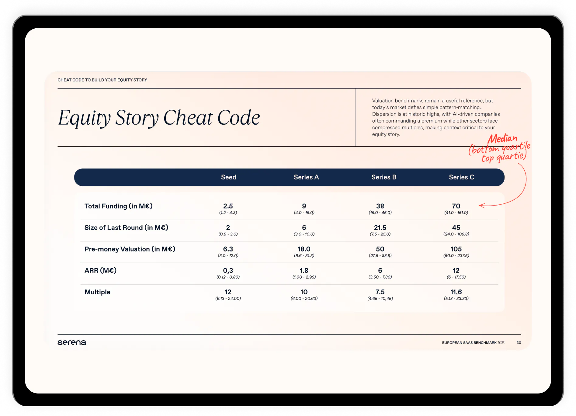 Our Equity story cheat code helps you understand how the market actually prices companies today, with clear reference points on round sizes, valuations, ARR expectations, and implied multiples from Seed to Series C.